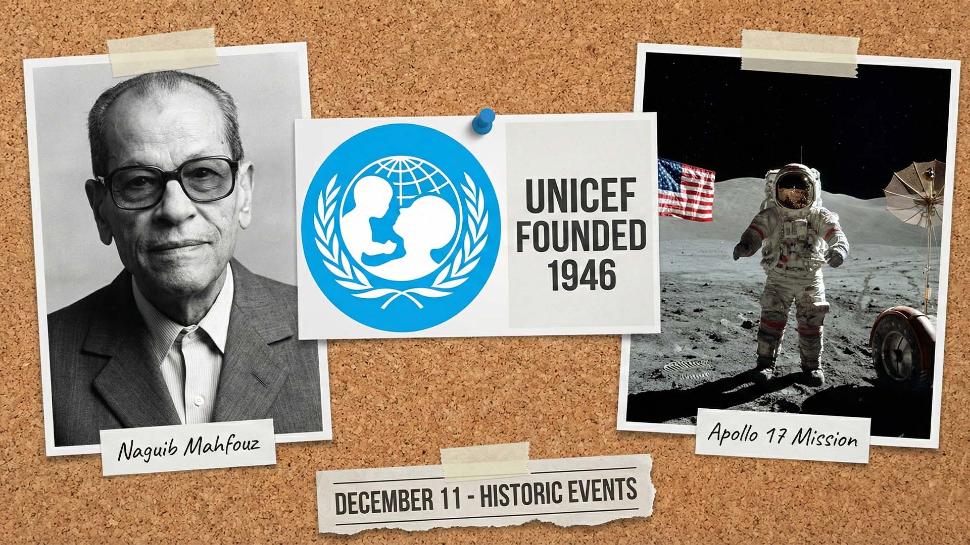 يطل علينا تاريخ الحادي عشر من ديسمبر حاملاً في طياته مزيجاً فريداً من الأحداث الإنسانية، السياسية، والثقافية التي شكلت وجه عالمنا المعاصر. عندما نتصفح ما حدث في مثل هذا اليوم، نجد أنفسنا أمام محطات مفصلية تتراوح بين انتصارات الأدب العربي، وقرارات الأمم المتحدة الحاسمة، وحتى الخطوات البشرية الأخيرة على سطح القمر.