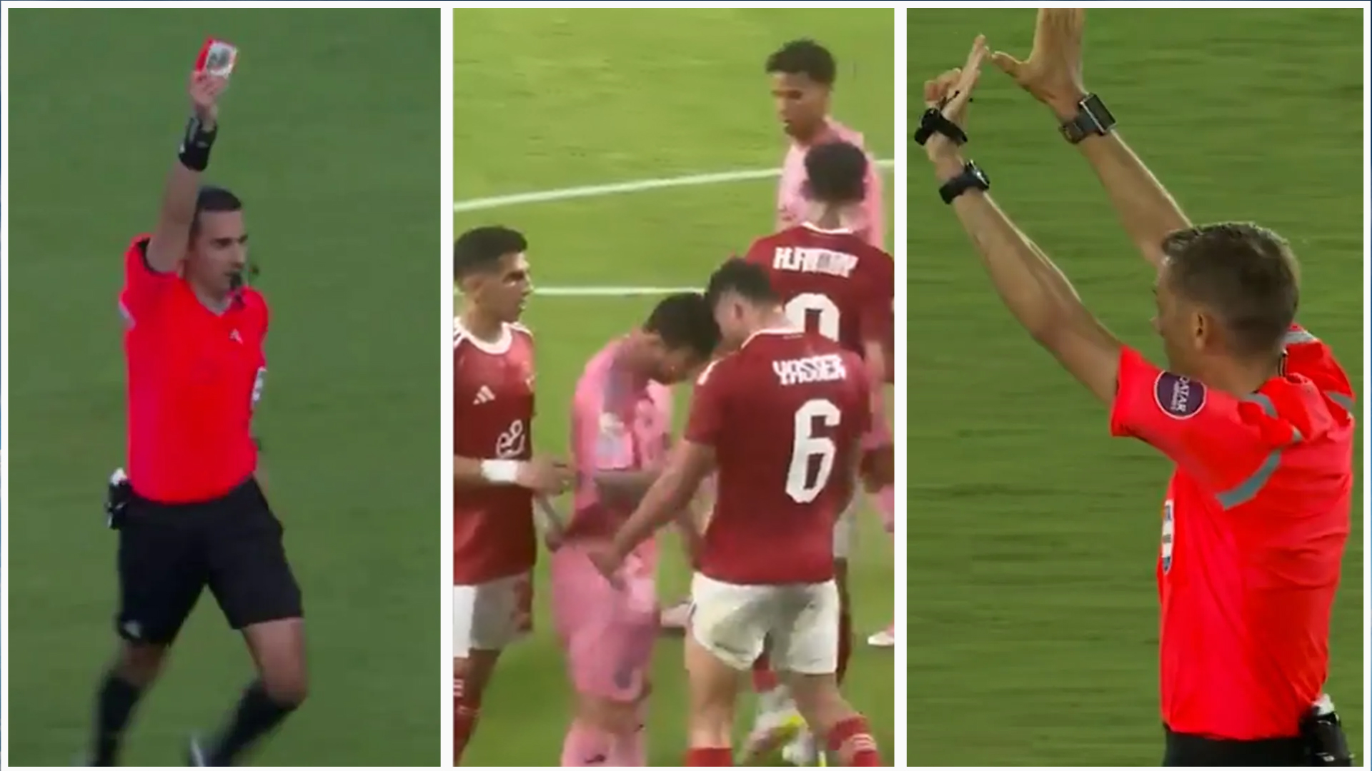 في المباراة التي جمعت الأهلي مع إنتر ميامي الأميركي، والتي انتهت بالتعادل السلبي. رصدت الكاميرات ميسي وهو يدخل في مشادة كلامية مع مدافع الأهلي ياسر إبراهيم، تلتها حركة برأسه وُصفت بأنها “نطحة” مباشرة.