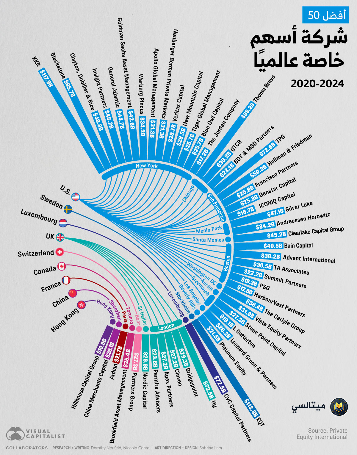 جدول ترتيب أفضل 50 شركة أسهم خاصة عالميًا 2020-2024