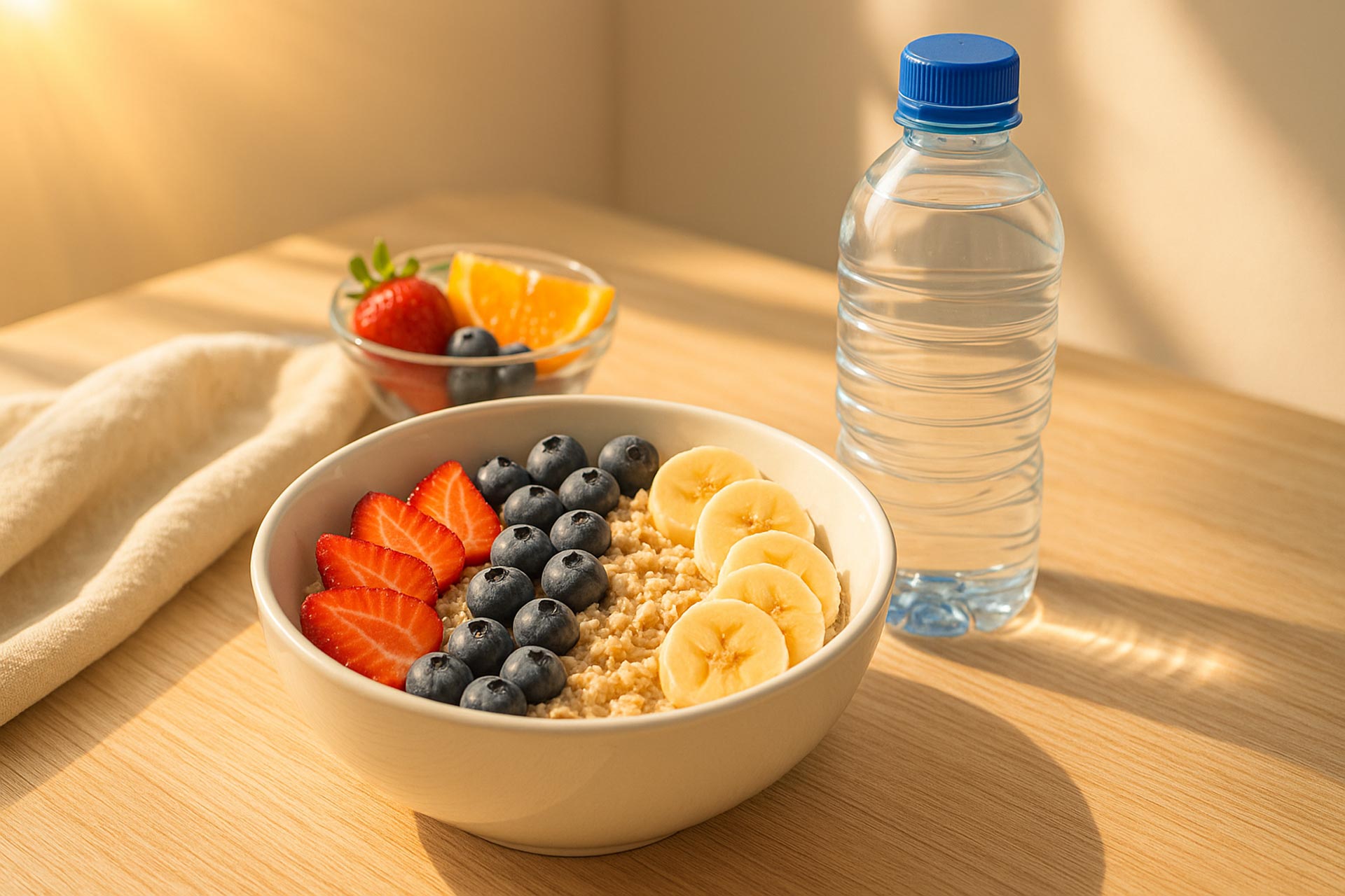 - وجبة الفطور: شوفان مع فواكه طازجة.