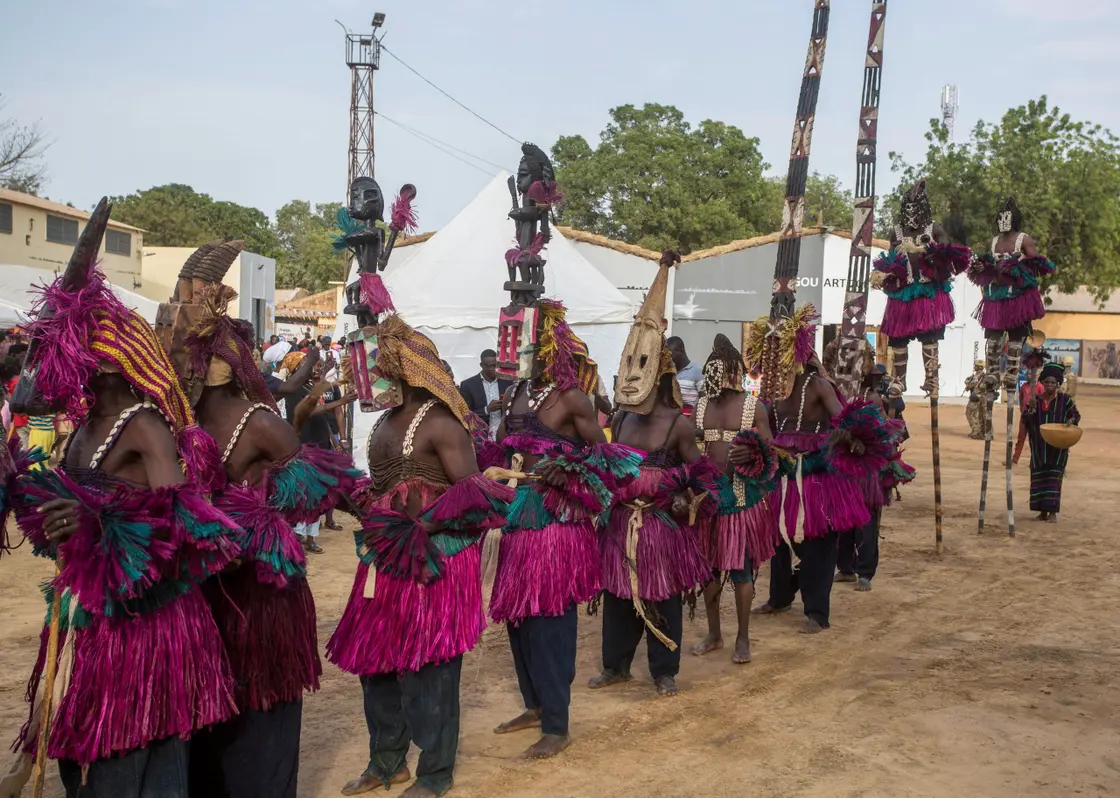 • رقص الأقنعة: طقس ديني واجتماعي مهم يرتبط بالزراعة والمواسم.