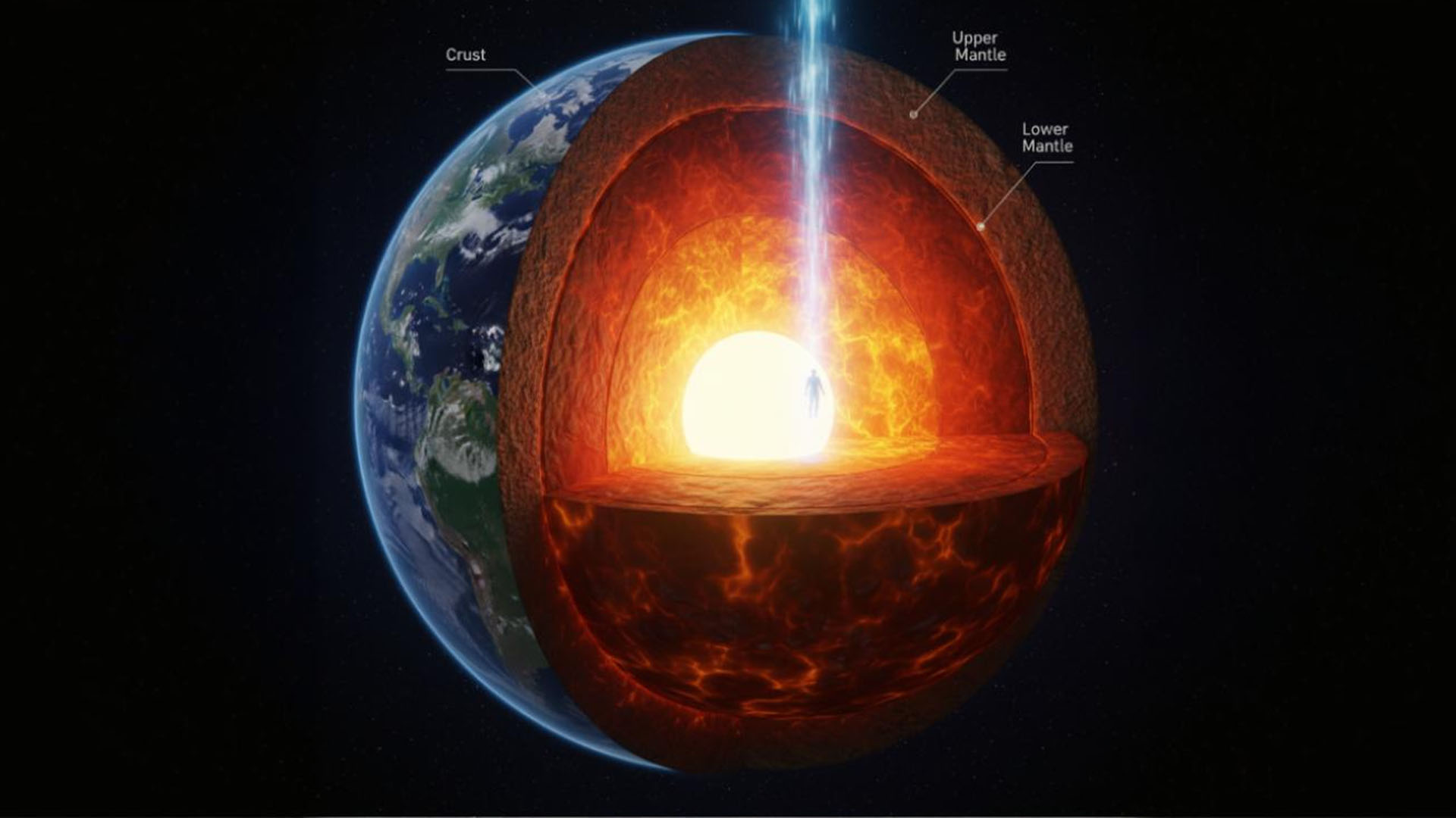 - القلب الصلب: أخيرًا، في المركز، ستصل إلى اللب الداخلي، كرة صلبة من الحديد والنيكل بحجم القمر تقريبًا، وبضغط يفوق 3.6 مليون مرة الضغط على سطح البحر. هنا، في قلب الكوكب، تتوازن قوى الجاذبية وتصبح صفرًا، لتطفو في حالة انعدام وزن فريدة من نوعها.