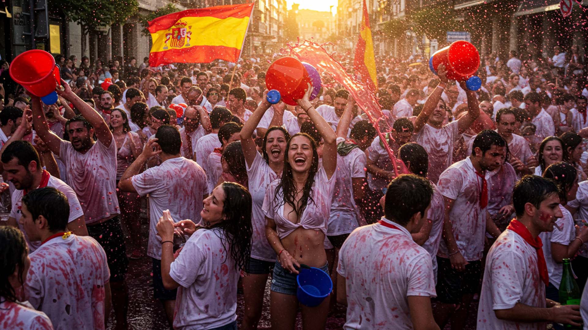 - الساعة 11:00–12:00: عودة المنتصرين (المبللين بالنبيذ) إلى مدينة هارو، يليها موكب موسيقي، وجولة في “Plaza de la Paz”، وأنشطة تشمل مصارعة الثيران .